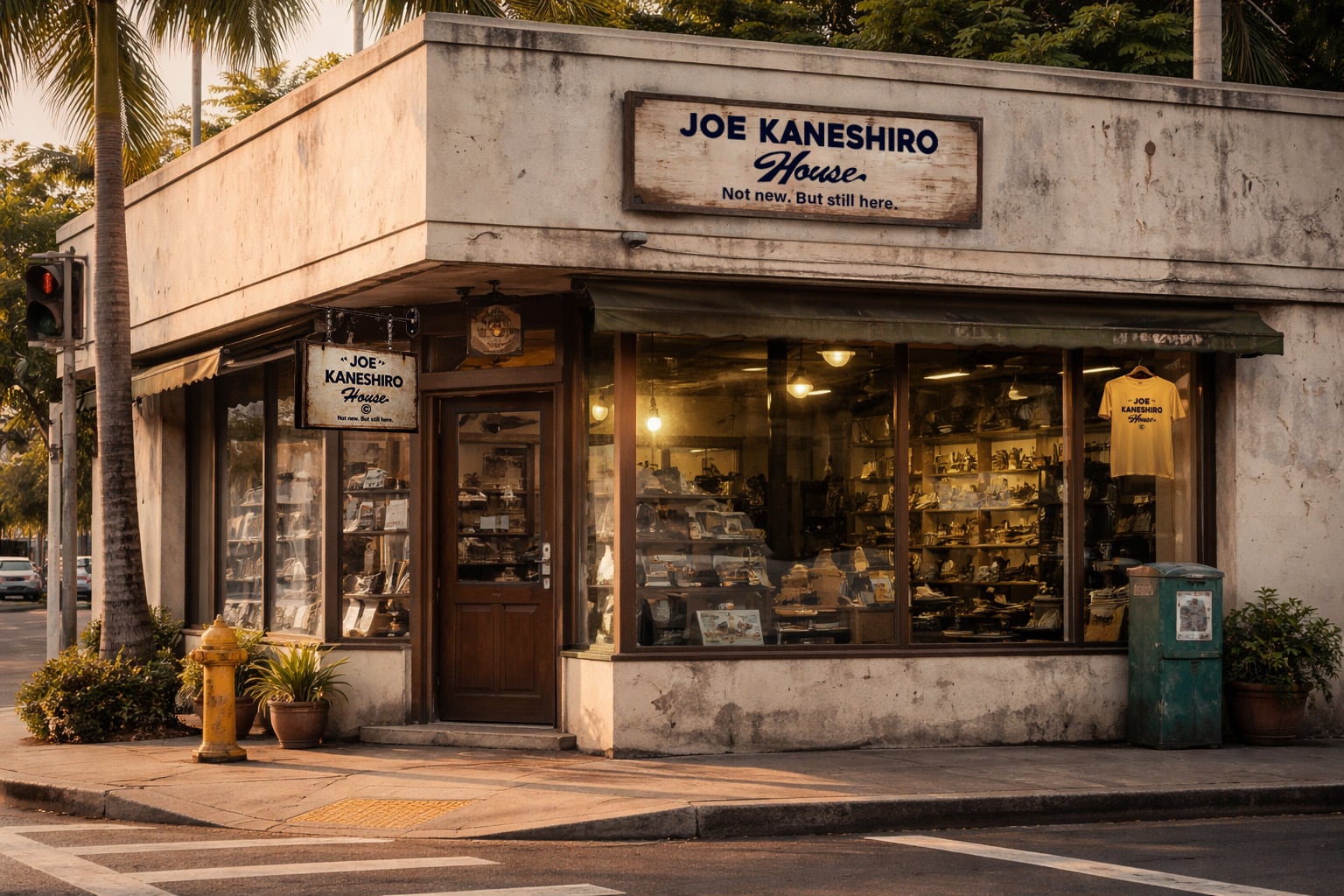 観光客の足が自然と止まるあたりから、少し外れた通りの交差点に、その店はある。通りの向こうには海が少しだけ見え、午後の光を受けた水面が細かくきらきらと輝いていた。波の音は遠く、風が潮の匂いを静かに運んでくる。ヤシの影が、道端のアスファルトをゆっくりとなぞっていく。